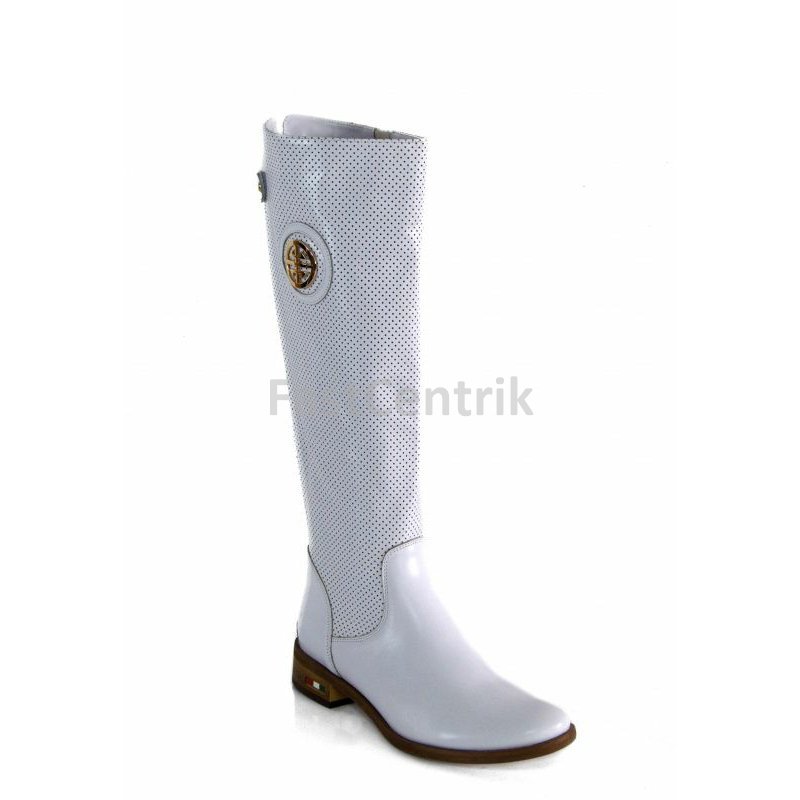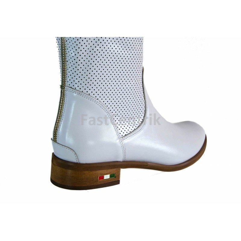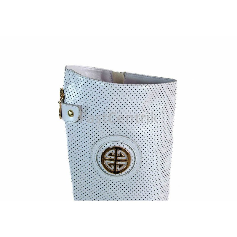 Kozačky jsou vyrobeny z vysoce kvalitní kůže – horní část tvoří hladká jemná kůže s dekorativním laserovým děrováním, spodní část je z pevné lakované kůže, která zajišťuje stabilitu a oporu chodidla.