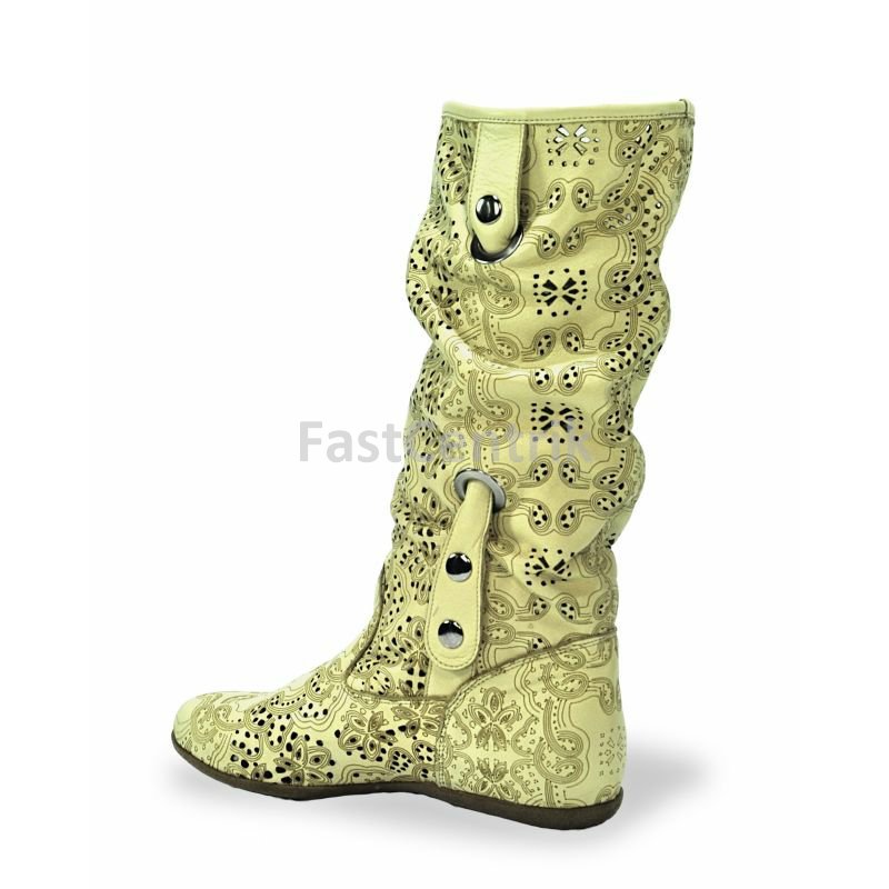 Děrované letní kozačky na shrnutí - 41/Béžová