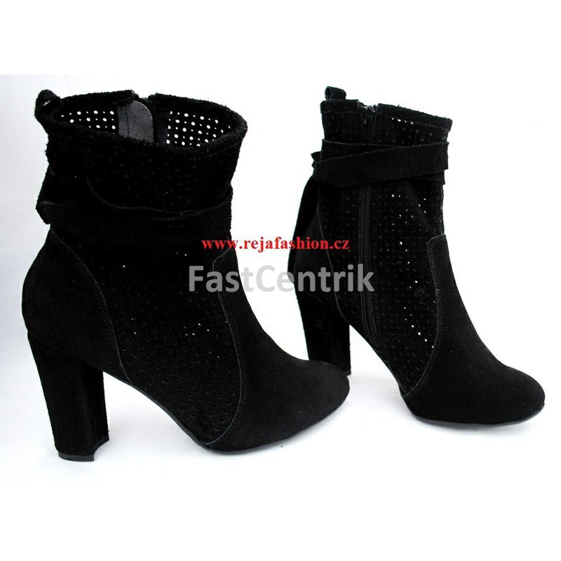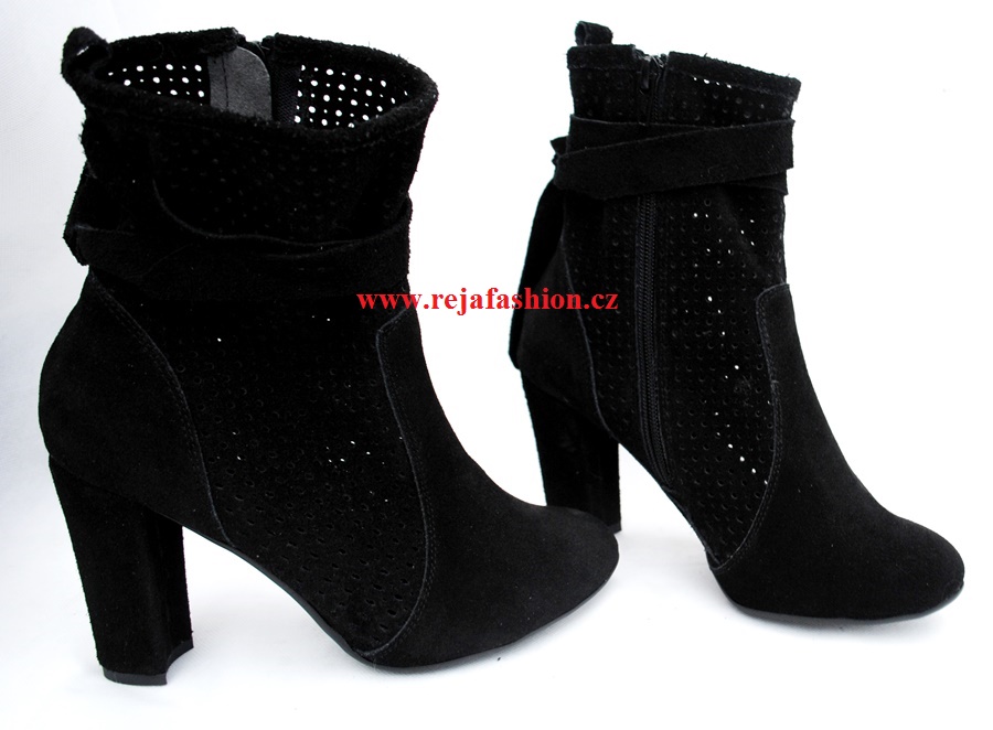 Parametry produktu Dírkované kotníkové letní kozačky na podpatku - 41/černá
