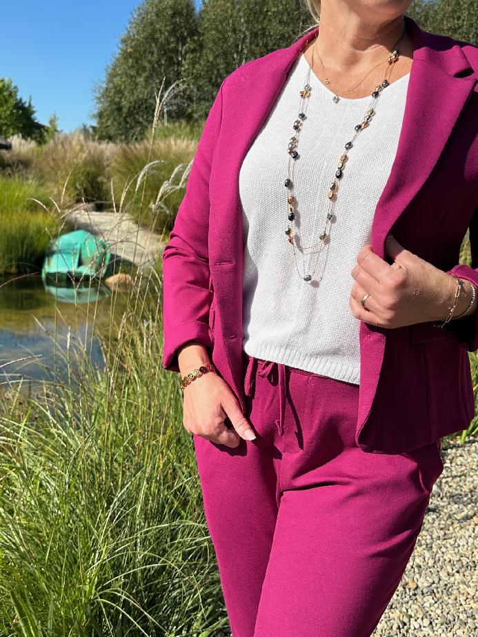 Velmi oblíbené strečové kalhoty, které úžasně sedí každé postavě, materiál je stalo barevný a odolný proti opotřebení. Ke kalhotám do setu máme stejné sako.