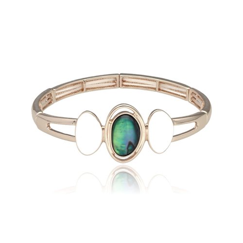 Elegantní náramek z antialergického kovu, barevného smaltu a přírodní mušle. Jedna velikost padne všem (na elastické pásky). Hledejte sadu náhrdelníku a náušnic se stejným číselným indexem. Šperky z antialergického kovu, ručně vyráběného epoxidu a mušle.