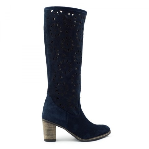 Podzimní kozačky děrované kytky na podpatku - 36/Tmavě modrá