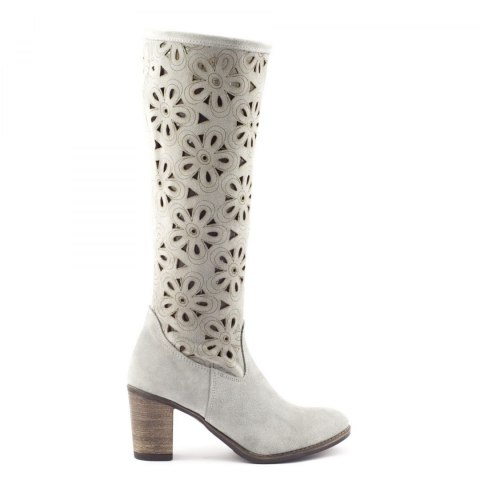 Podzimní kozačky děrované kytky na podpatku - 40/Šedá