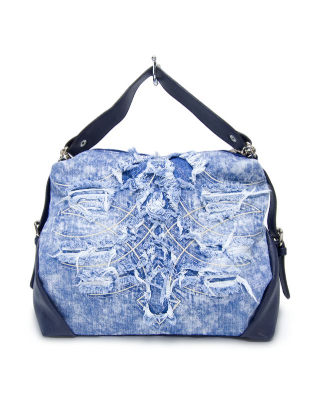 Kabelka Jeans 8035 ,, rifle " s delším uchem, obdélníkového tvaru o rozměru v/š/h : 28 / 37 / 13 cm, kožená úchytka o délce 25 cm , přes rameno, vnitřní kapsa na zip a kapsičky rozdělené do menších prostor pro přehled úložných věcí.