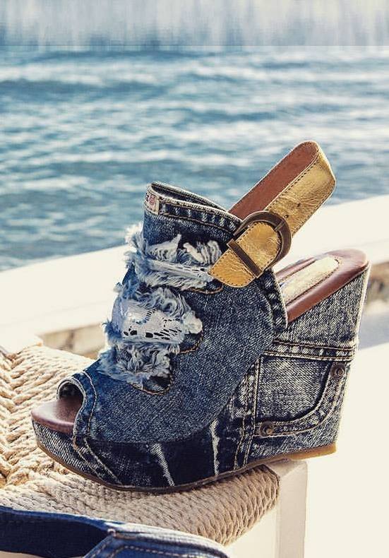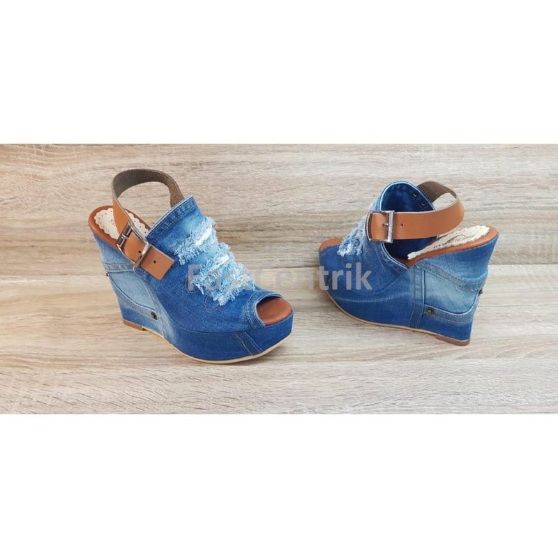 Velmi kvalitní riflová obuv, na klínu, velmi pohodlné.