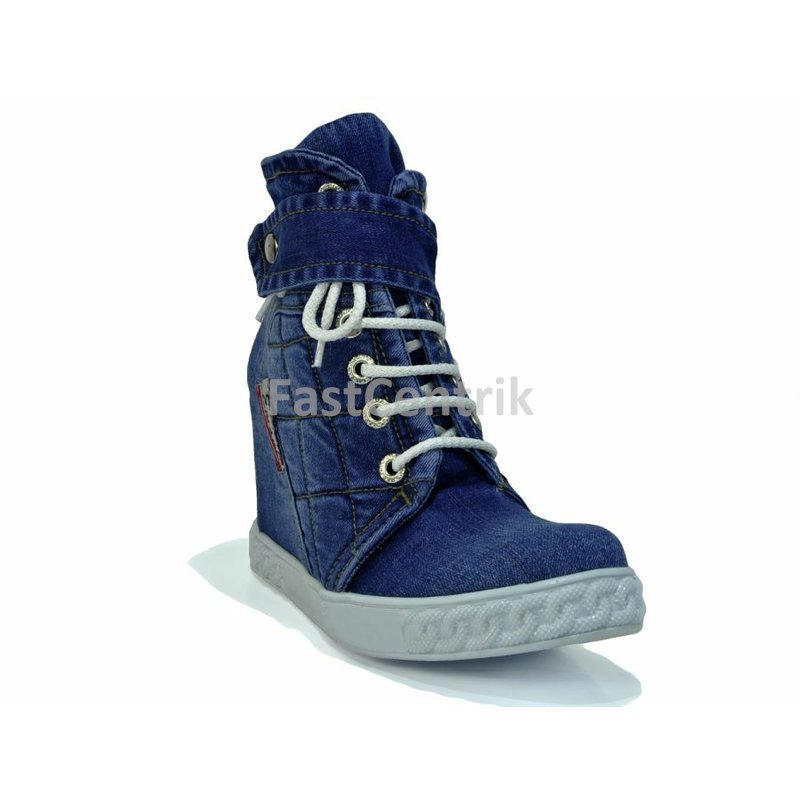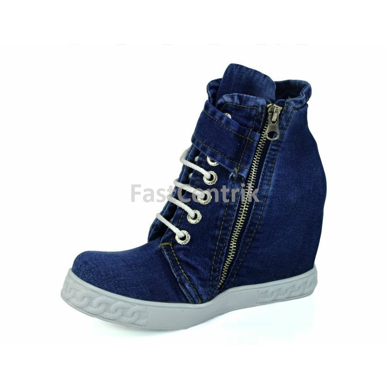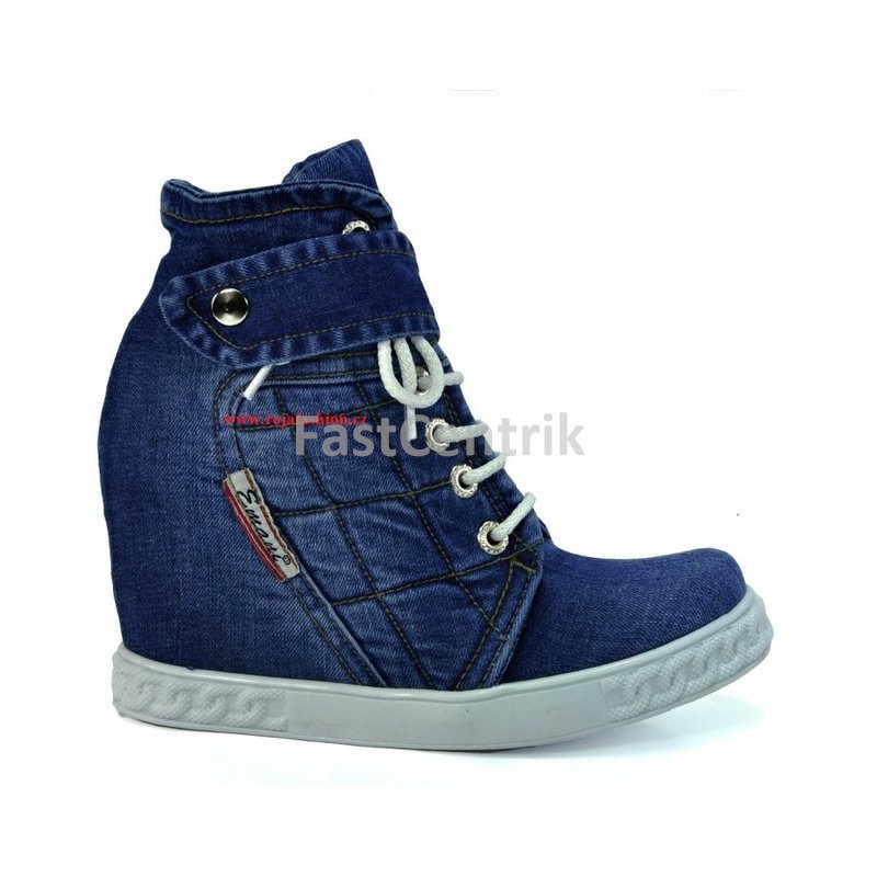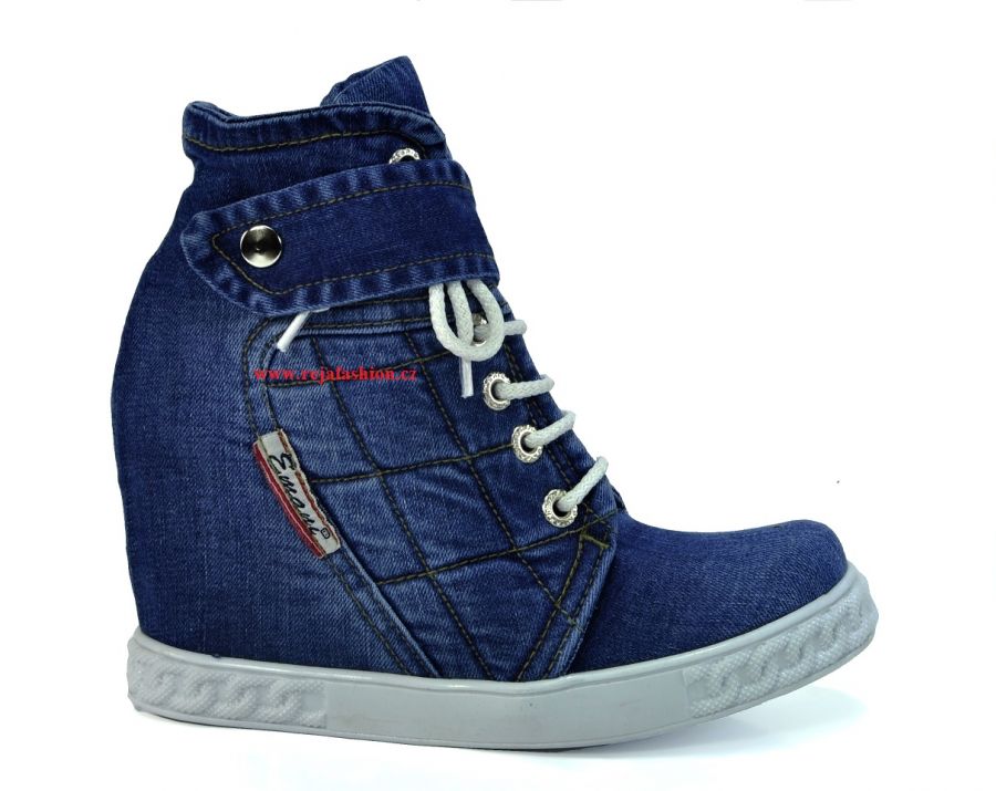 Model 51-09 -- NOVINKA vroubkovaná podrážka s neklouzavou úpravou podpatek na skrytém klínu o výšce 8 cm, celková výška 19 cm, odlehčená a pohodlná obuv jako papuč s pravé rifloviny.