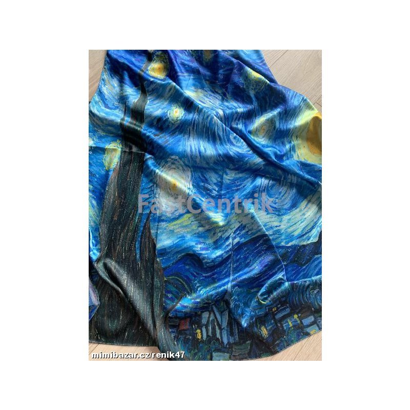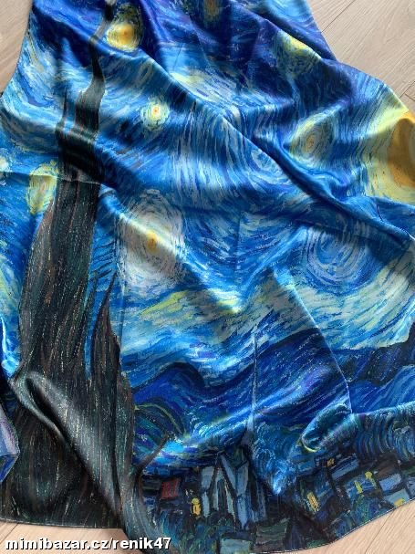 Velmi kvalitní šátek oboustranný, jedna strana je motivem předních malířů, druhá je jednobarevná.