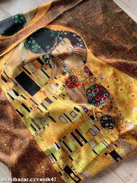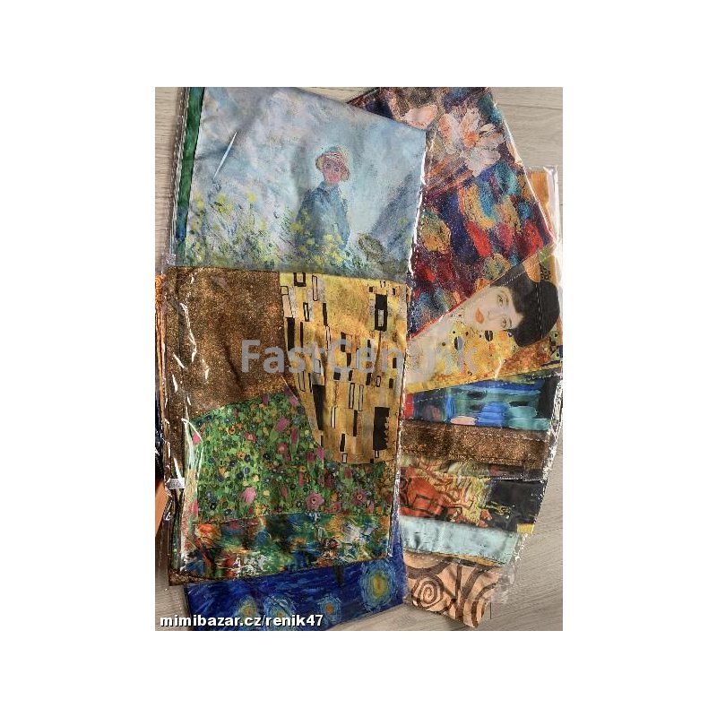 Velmi kvalitní šátek oboustranný, jedna strana je motivem předních malířů, druhá je jednobarevná.