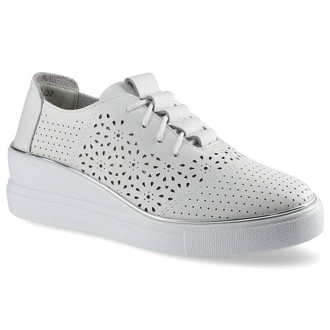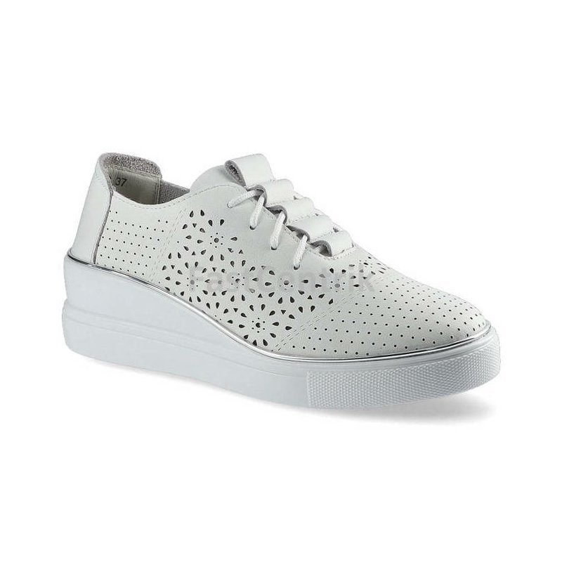 Tenisky děrované na klínu - 39/Bílá se stříbrným
